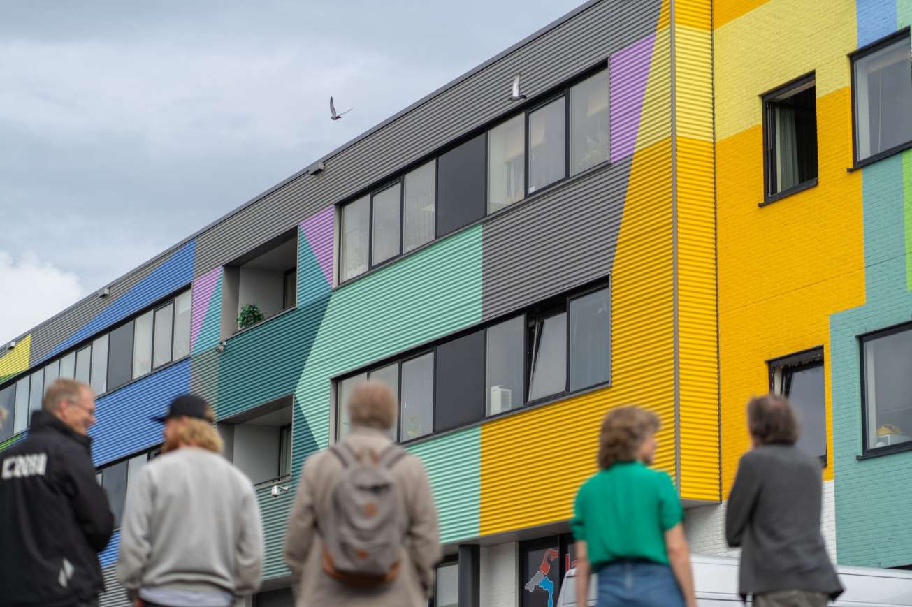 Samen met de wethouder van de wijk Overvecht Rachel Streefland, de kunstenaar, de eigenaar, onze huurders en veel geïnteresseerden werd de onthulling een feestje. Mét aansluitend een unieke dans- en muziekperformance door Community Overvloed en een rondgang langs open ateliers en werkplekken. Het was een kleurrijke middag en dat bleef niet onopgemerkt. U in de Wijk Overvecht - een platform waar bewoners zelf het nieuws uit hun wijk brengen - maakte er deze leuke reportage over.