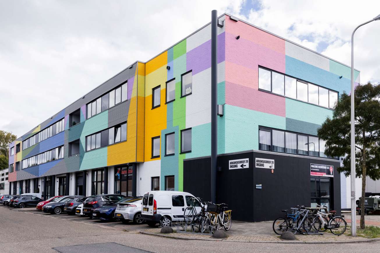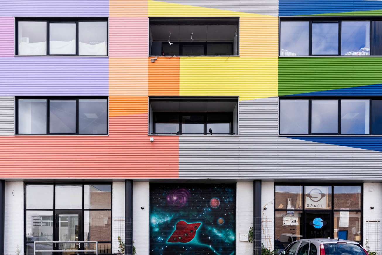 Op 9 september werd het nieuwe gevelkunstwerk onthuld dat kunstenaar Emmy Beenken ontwierp voor onze creatieve broedplaats op de Arkansasdreef in Overvecht. Met de kleurrijke muurschildering heeft het gebouw een dynamische, speelse uitstraling gekregen die past bij een creatief verzamelpand en haar huurders. De kunstopdracht is een initiatief van de eigenaar van het gebouw, DePlaatsmaker en Ondernemersloket Nieuw Overvecht.