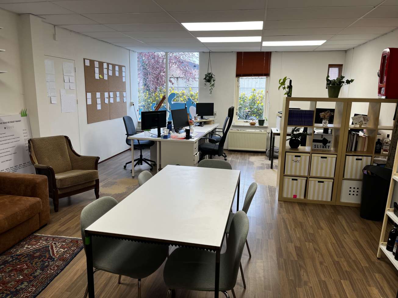 Grote lichte ruimte met uitzicht op de parkeerplaats. Gelegen in de rustige Rivierenbuurt.