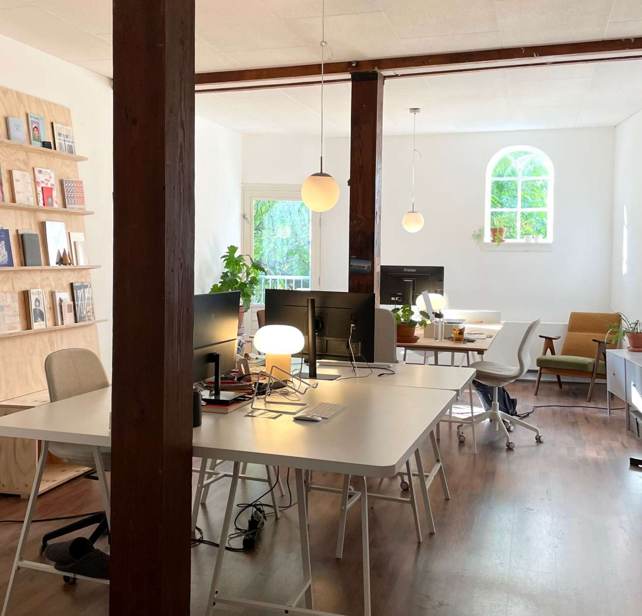 In het Hooi & Stro-gebouw aan het Hooghiemstraplein is een bureauwerkplek beschikbaar voor een creatieve ondernemer. De plek is ook geschikt voor parttime gebruik.