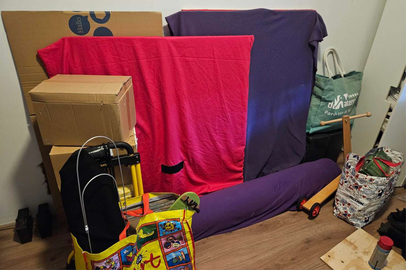 Een belangrijke voorwaarde is wel dat de ruimte op de begane grond is en dat zij haar auto dichtbij het gebouw kan parkeren om te laden en lossen. Ongeveer één keer per week wisselt zij van decor. Het zijn geen hoge delen, maar kleine theaterdecors voor verschillende kindervoorstellingen.